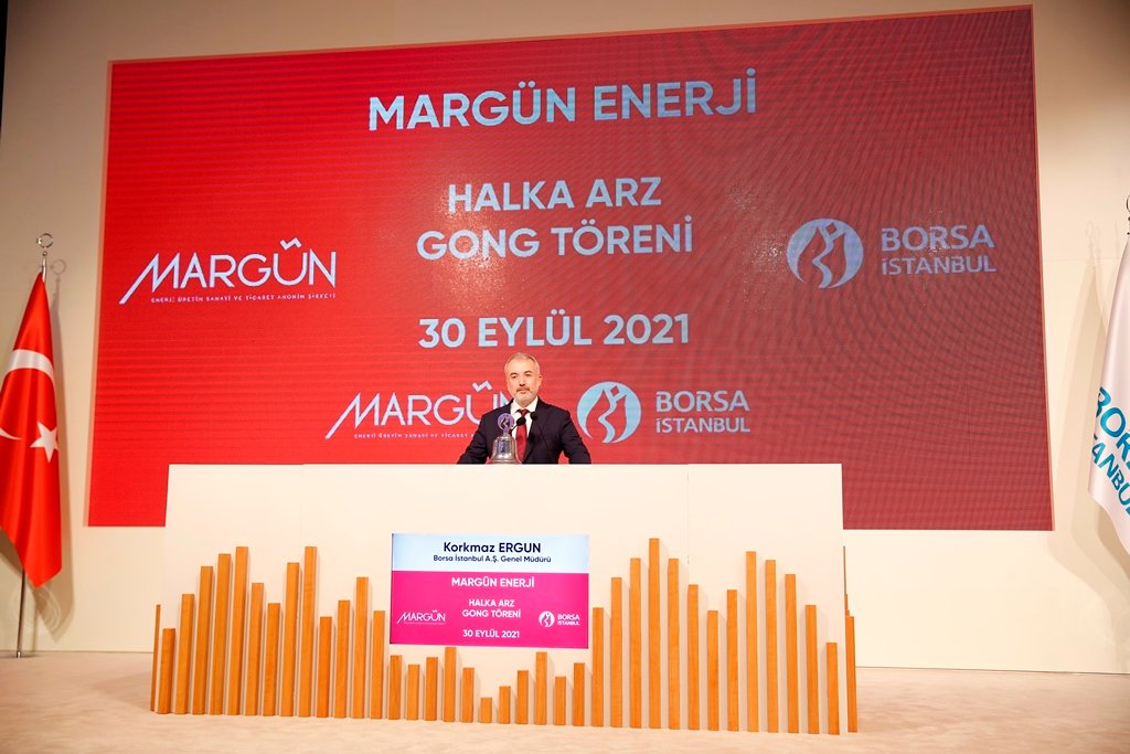 Borsa İstanbul AŞ Genel Müdürü Korkmaz Ergun, Margün Enerji Üretim Sanayi ve Ticaret AŞ’nin halka arz geliriyle yenilenebilir enerji yatırımları yapacak olmasının, sermaye piyasasının kalkınmaya yaptığı katkı açısından en güzel örneklerden biri olduğunu belirterek, ‘206 bin yatırımcıya 830 milyon liralık satışla gerçekleştirilen bu başarılı halka arzdan dolayı kendilerini tebrik ediyorum.’ dedi. Ergun, Margün Enerji Üretim Sanayi ve Ticaret AŞ’nin tamamlanan halka arzı dolasıyla düzenlenen gong töreninde yaptığı konuşmada, bir yenilenebilir enerji şirketinin borsada yatırımcılarla buluştuğunu dile getirdi. Üretimin girdilerinden biri olan enerjinin uygun fiyatla kesintisiz bir şekilde devamlı olarak sağlanabilmesi için özellikle yenilenebilir enerji kaynaklarının kapasitesinin artırılmasının Türkiye’nin kalkınmasında kritik bir rol oynadığını dile getiren Ergun, şu ifadeleri kullandı: