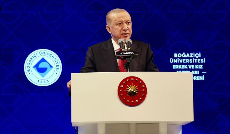 Cumhurbaşkanı Recep Tayyip Erdoğan, Boğaziçi Üniversitesi Erkek ve Kız Yurtları Açılış Töreni’ne katıldı. Güney Kampüs Albert Long Hall’de gerçekleştirilen törende Erdoğan, deprem güvenliği nedeniyle yıkılan ve 2 milyar lira yatırımla inşa edilecek yeni Boğaziçi Üniversitesi Kütüphanesi’nin, 3 milyar liralık modern laboratuvar binasının ve daha büyük konferans salonunun müjdesini verdi.