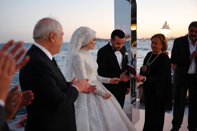 Four Seasons Otel’de boğaza nazır gerçekleşen muhteşem gecenin ilk bölümünde, çiftin nikah şahitliklerini; Opet Genel Müdürü İrfan Özdemir, Mustafa Kemal Sinanlı, Yılmaz Çakır, Murat Cengiz, Mehmet Daniş, 23. Dönem Batman Milletvekili Mehmet Emin Ekmen, 20 ve 21. Dönem ANAP ve 26. Dönem Ak Parti Milletvekili Ataullah Hamidi, Adalet ve Kalkınma Partisi Kurucular Kurulu Üyesi Belma Satır yaptı. Evlilik cüzdanlarının yanı sıra bir ömür boyu mutluluğa imza attıkları kelemide en özel günlerinin hatırası olarak Belma Satır’ın elinden alan çift, ilk dansları için ise Eylem Aktaş’ın ”Yüreğimden Tut” şarkısını tercih etti. Nikah merasiminin ardından Kuran-ı Kerim tilaveti ve ilahilerle başlayan düğün töreninde yöresel Troya Halk Oyunları ekibinin muhteşem gösterisi ile geceye damgasını vurdu. Muhteşem düğünde Elie Saab marka özel bir gelinlik tercih eden Ayşegül Hamidi’nin güzellik ve zerafetini eşi Hamza Hamidi ise Paul Smith marka damatlıkla tamamladı. Balayı için Bodrum’u tercih edecekleri öğrenilen çiçeği burnunda çift gece boyunca Tülayca Genç Orkestra’nın şarkılarıyla gönüllerince eğlendiler.