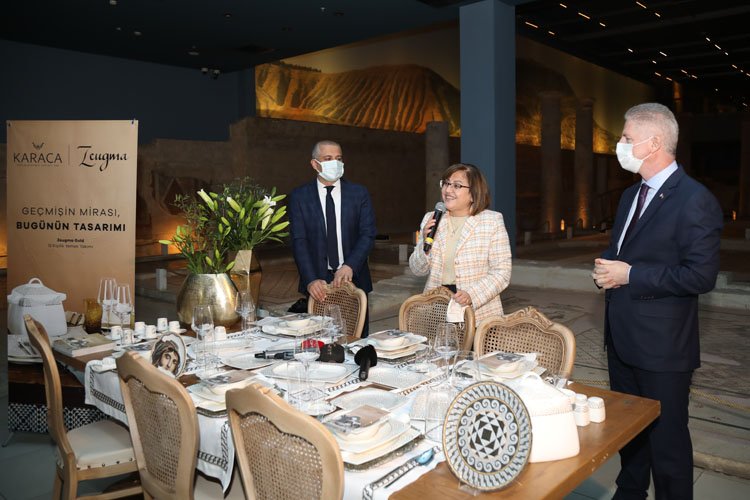 Sofra, mutfak, küçük ev aletleri, dekorasyon ve ev tekstili alanında sektörün lider isimlerinden Karaca, Gaziantep’in tarihi zenginliğini ürünlerine taşıdı. Gaziantep Belediye Başkanı Fatma Şahin’in de katkılarıyla şekillenen proje ile Zeugma’nın simgesi, dünyaca ünlü “Çingene Kızı” mozaiği ve birçok farklı mozaik deseni kullanılarak özel bir seride hazırlandı.