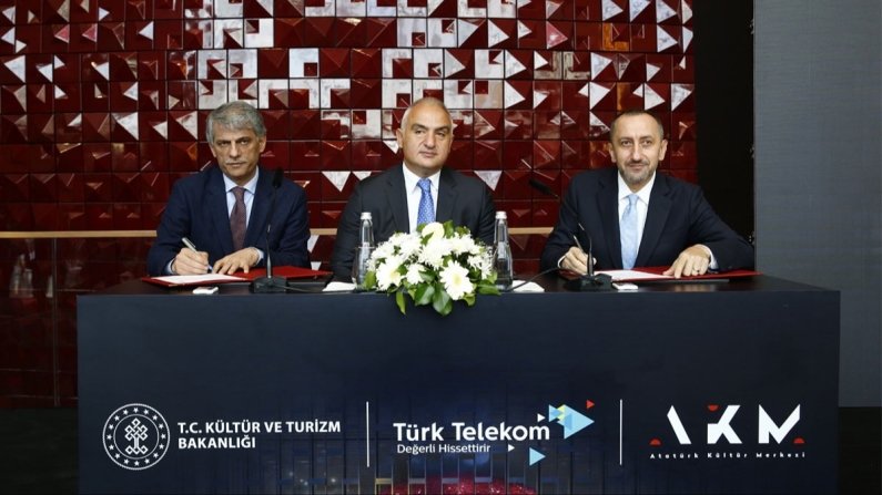 Kültür ve Turizm Bakanlığı ile Türk Telekom arasında imzalanan anlaşma kapsamında şirket AKM’nin ana destekçisi oldu. Bu çerçevede AKM’nin simgesi kırmızı kürenin bulunduğu 2 bin 40 kişilik ana opera salonuna Türk Telekom’un adı verildi. Kültür ve Turizm Bakanı Mehmet Nuri Ersoy’un katılımıyla gerçekleşen törende, iş birliği protokolünün imzaları Kültür ve Turizm Bakan Yardımcısı Nadir Alpaslan ile Türk Telekom CEO’su Ümit Önal tarafından imzalandı. Bu kapsamda teknoloji ve dijital dönüşüm deneyimini kültür-sanat alanına da aktaran Türk Telekom, AKM içindeki ve Beyoğlu Kültür Yolu’nda sanatseverlerin yenilikçi teknolojileri deneyimlemeleri için Wi-Fi bağlantı noktaları, 4.5G ve 5G mobil hizmetleri ile uçtan uca tüm telekomünikasyon hizmetlerinin sağlayıcısı olacak.