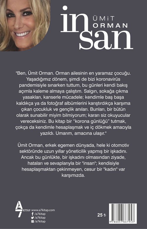 Ümit Orman, korona günlerinde evde geçirdiği vakti, ilham veren hayatını ve yaşadığı güçlükleri “günlüğe” dökerek geçirdi; ardından tüm Türkiye ile paylaşmak için kitaplaştırdı. İNSAN kitabını Orman, “kendi ile hesaplaşmak ve iç dökmek amacıyla” yazdığını söylüyor. O, erkek egemen iş dünyasında kadın olarak gücünü gösterdi ancak bilmediği, hayatın ona talihsiz sürprizler hazırladığıydı!Ölümle yaşam arasında gidip gelme